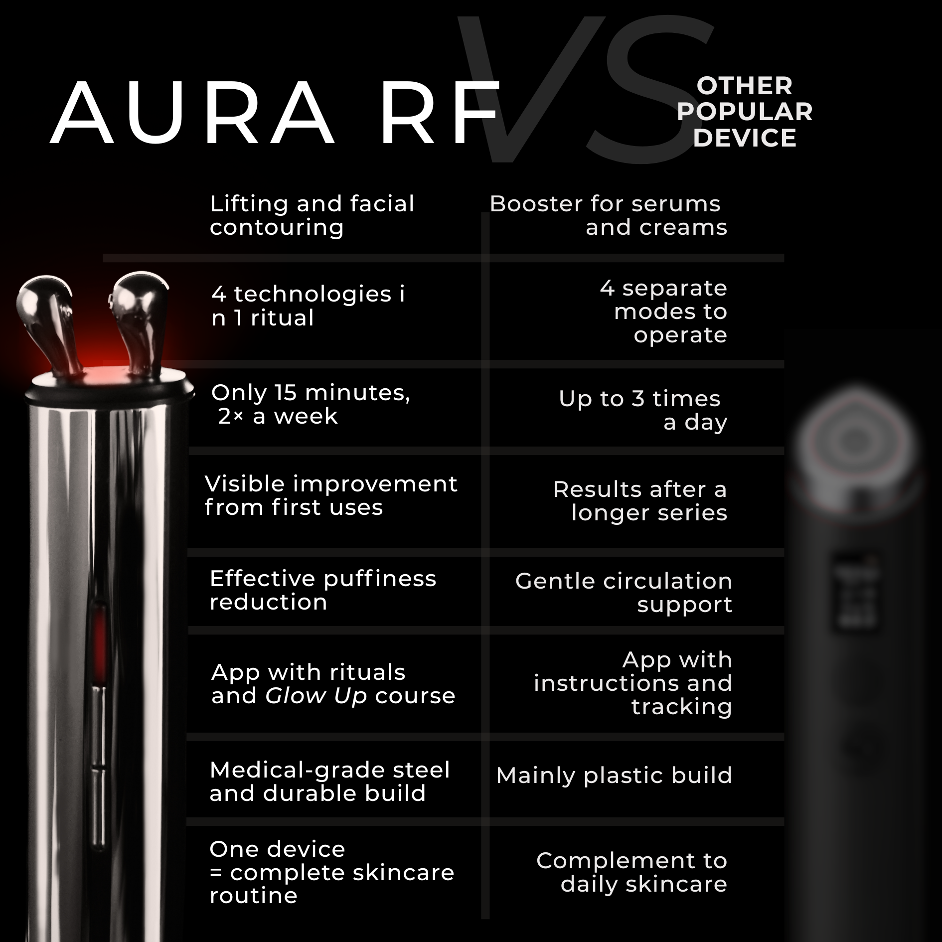 Aura RF – كل ما تحتاجينه للحصول على بشرة مشدودة ومشرقة وشابة المظهر، كل ذلك في جهاز واحد.